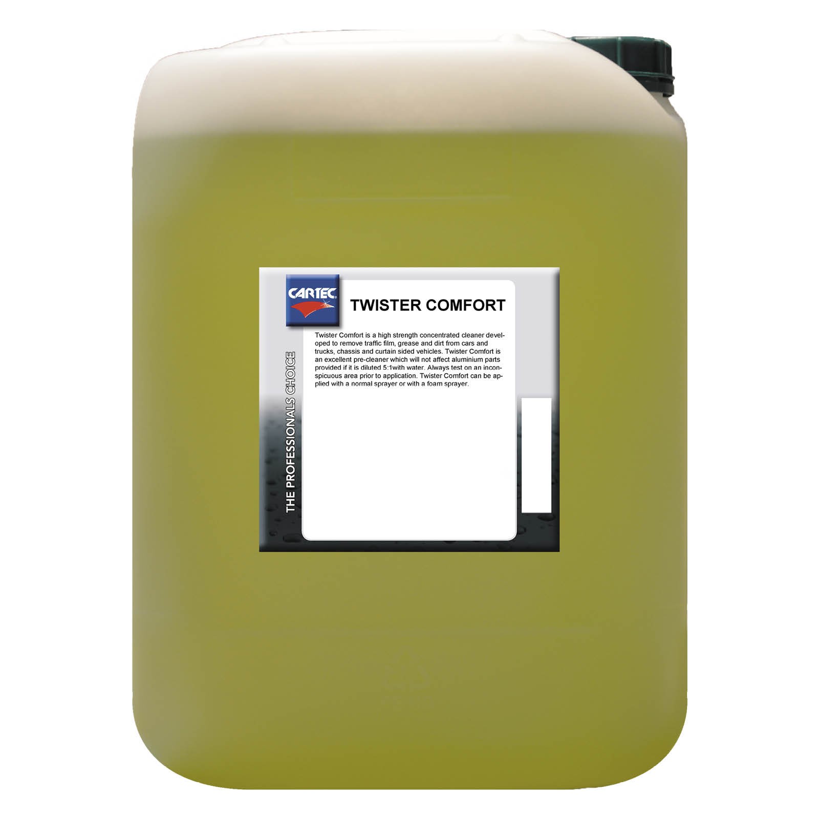 Een sterk geconcentreerd reinigingsproduct. Het product verwijdert snel en grondig het verkeersvuil van auto's en vrachtwagens, chassis en dekzeilen. Twister comfort is ook een uitstekende voorreiniger, omdat het veilig is voor gebruik op aluminium en chroom.