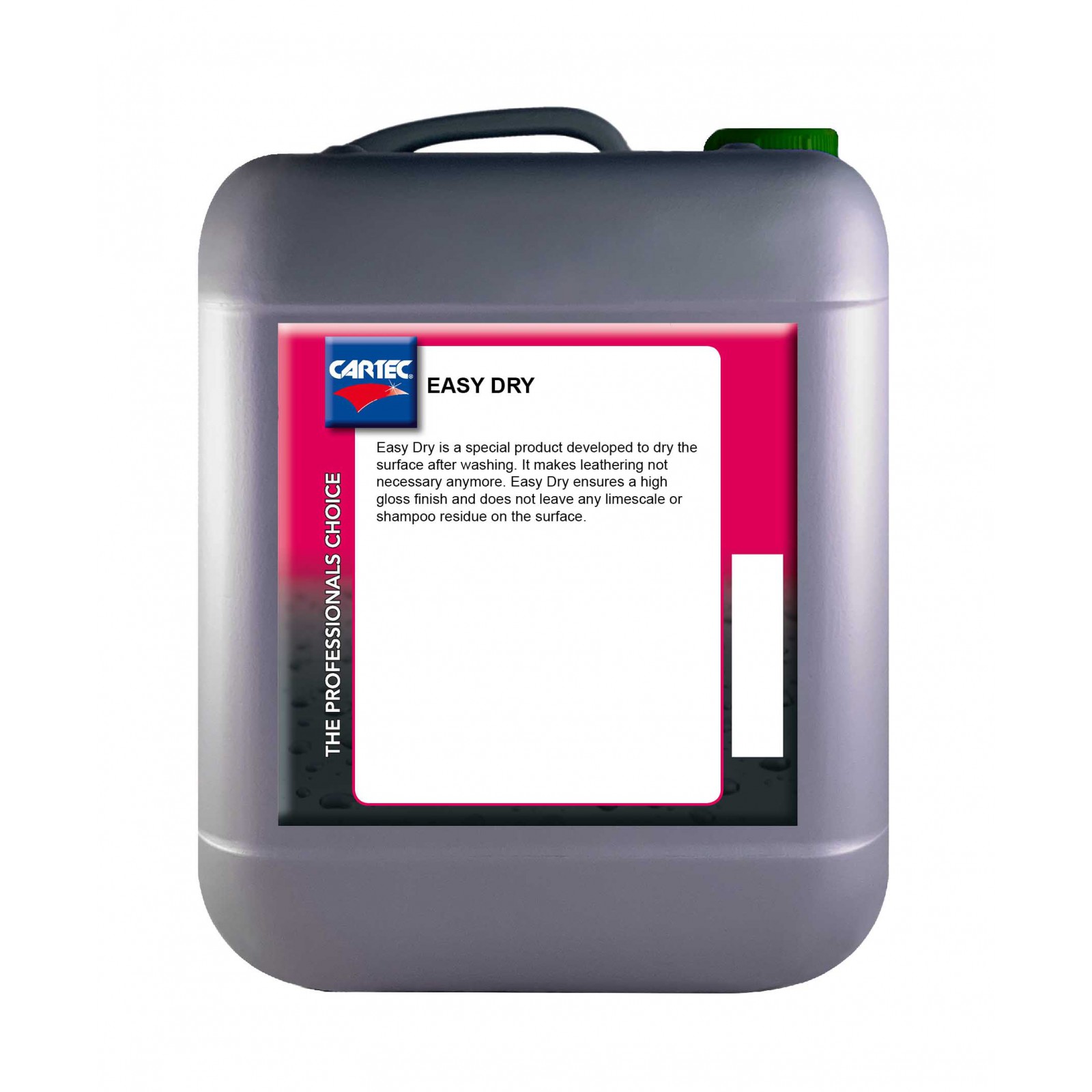 Easy Dry is een speciaal product om een auto snel te laten opdrogen na een wasbeurt. Hierdoor is zemen niet meer nodig. Easy Dry zorgt ervoor dat de auto glanzend opdroogt zonder resten van kalk of shampoo. Te gebruiken in combinatie met Easy Wash.